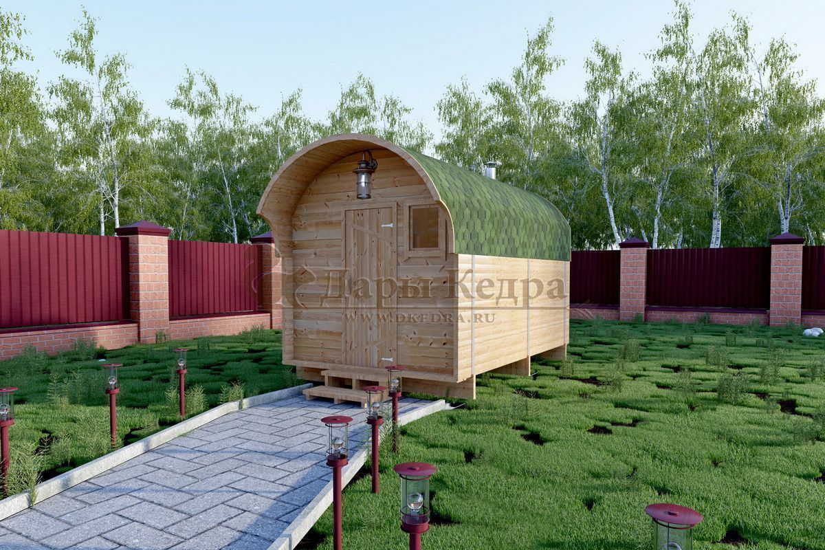 Баня-бочка представляет собой конструкцию в виде бочонка без углов. Такая форма считается оптимальной для равномерного распределения пара по всей внутренней поверхности парной. Таким образом, пар не скапливается в одном месте, а циркулирует по всему объему. Соответственно, круглая (квадратная, овальная) баня экономичная: топится быстро, требует дров мало.