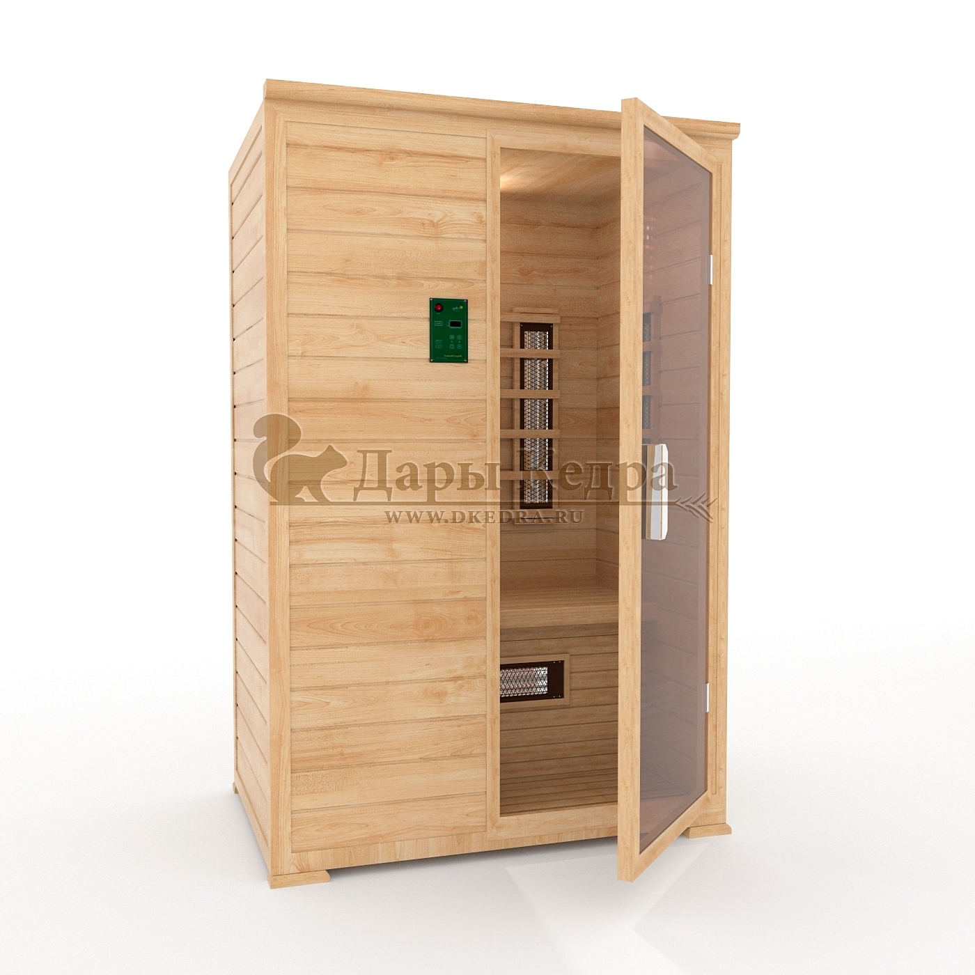 Это специально оборудованная кабина из липы для прогрева тела человека сухим теплом. Воздух в таких парных не нагревается. Инфракрасные лучи воздействуют на тело, равномерно прогревая мышцы, суставы и органы. Керамические излучатели похожи на лампы, имеют высокую температуру нагрева, поэтому защищены противоожоговыми решетками. Тело человека в таких саунах нагревается интенсивнее. Работает кабина за счет электричества. Двухместная инфракрасная сауна с керамическими излучателями подойдет как для домашнего использования, так и для коммерции.