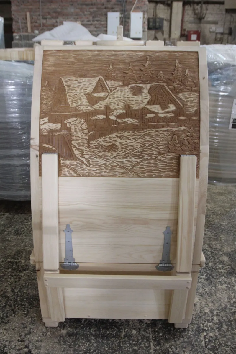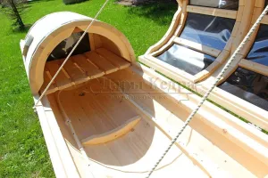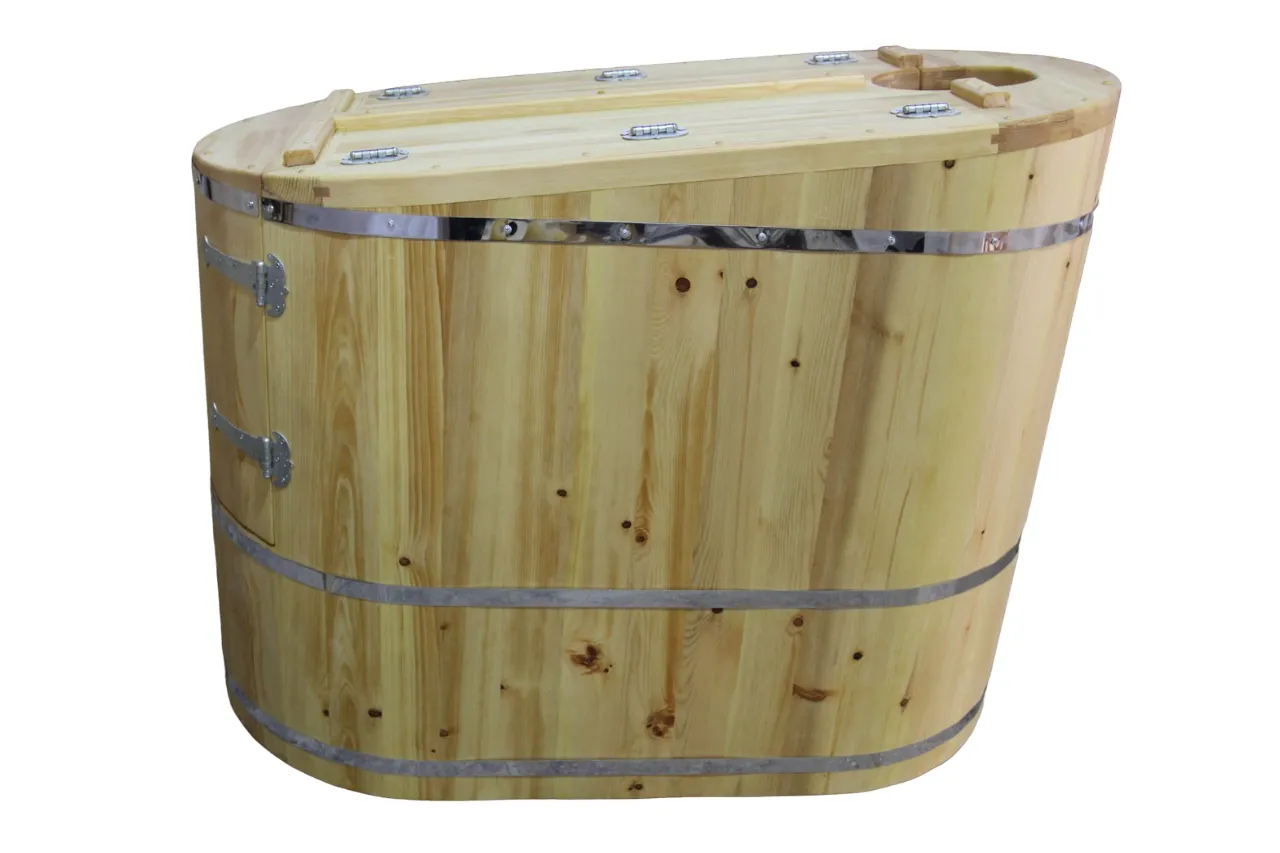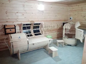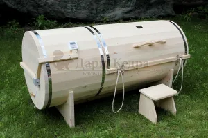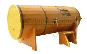 Горизонтальная двухрежимная фитобочка из кедра может быть использована как инфракрасная сауна и парная. Карбоновые излучатели отвечают за сухое парение и находятся на внутренней стороне дверцы. Влажное парение происходит за счет поступления горячего пара в фитобочку через паропровод. Горизонтальная форма позволяет принимать процедуры лежа. Внутренняя ручка из кедра облегчает открывание и закрывание двери во время парения. Такая модель наиболее удобна для оздоровительных центров.