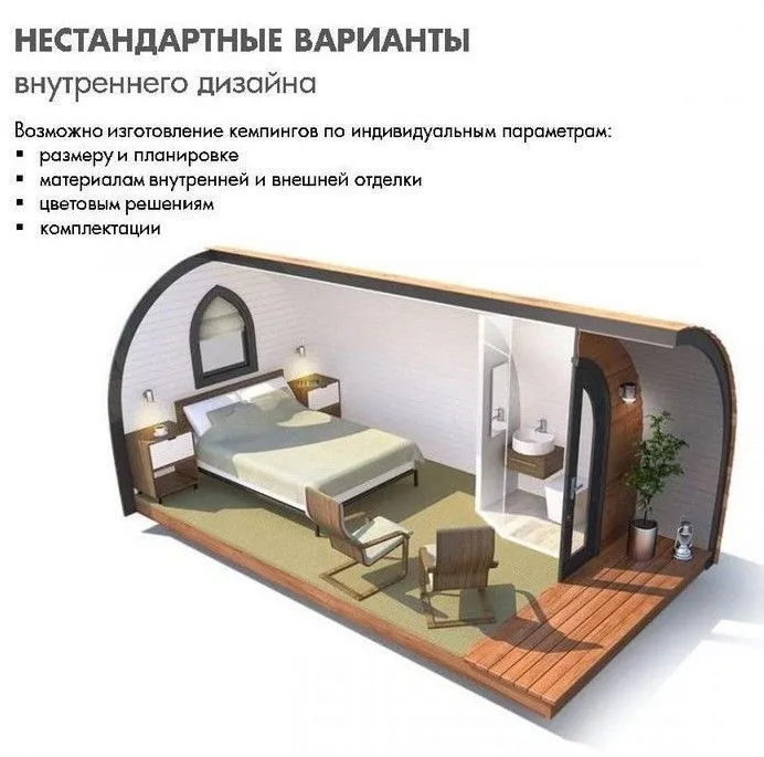Чтобы установить кемпинг-домик по месту его размещения, достаточно заранее подготовить выровненную площадку. Кемпинг является облегченной версией дома, поэтому не требует полноценного фундамента, достаточно выложить тротуарную плитку или сделать насыпную площадку, установив обвязку брусом 150 мм. Главное условие - это воздухообмен между дном глэмпингом и площадкой. Нельзя устанавливать конструкцию на траву, неровную площадку. Потребуется организовать слив, если в доме имеется сан.узел или душевая кабина. Самым распространенным фундаментом для глэмпинга является каркасный фундамент с обшивкой террасной доской, смотрится стильно, дополняет конструкцию эко-дома.