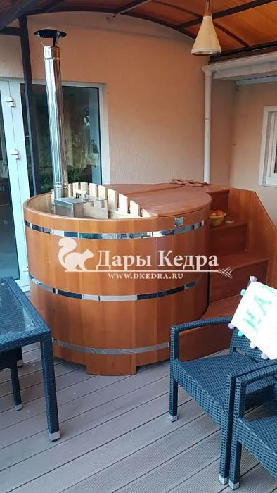 Фурако круглая из кедра с внешней печью