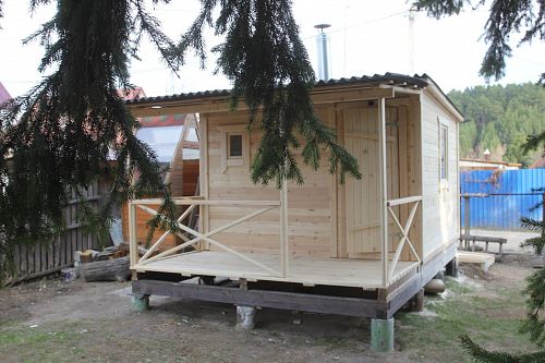 Заказывали как летний домик с дополнительными окнами и расширенной верандой, получилось очень интересно. А вместо полков у нас были лежаки. Сами купили матрасы в размер. На первое время вообще было очень удобно, потом достроили дом, переехали туда, а этот переоборудовали в баню. Докупили печь в Дарах Кедра. Все просто т удобно.